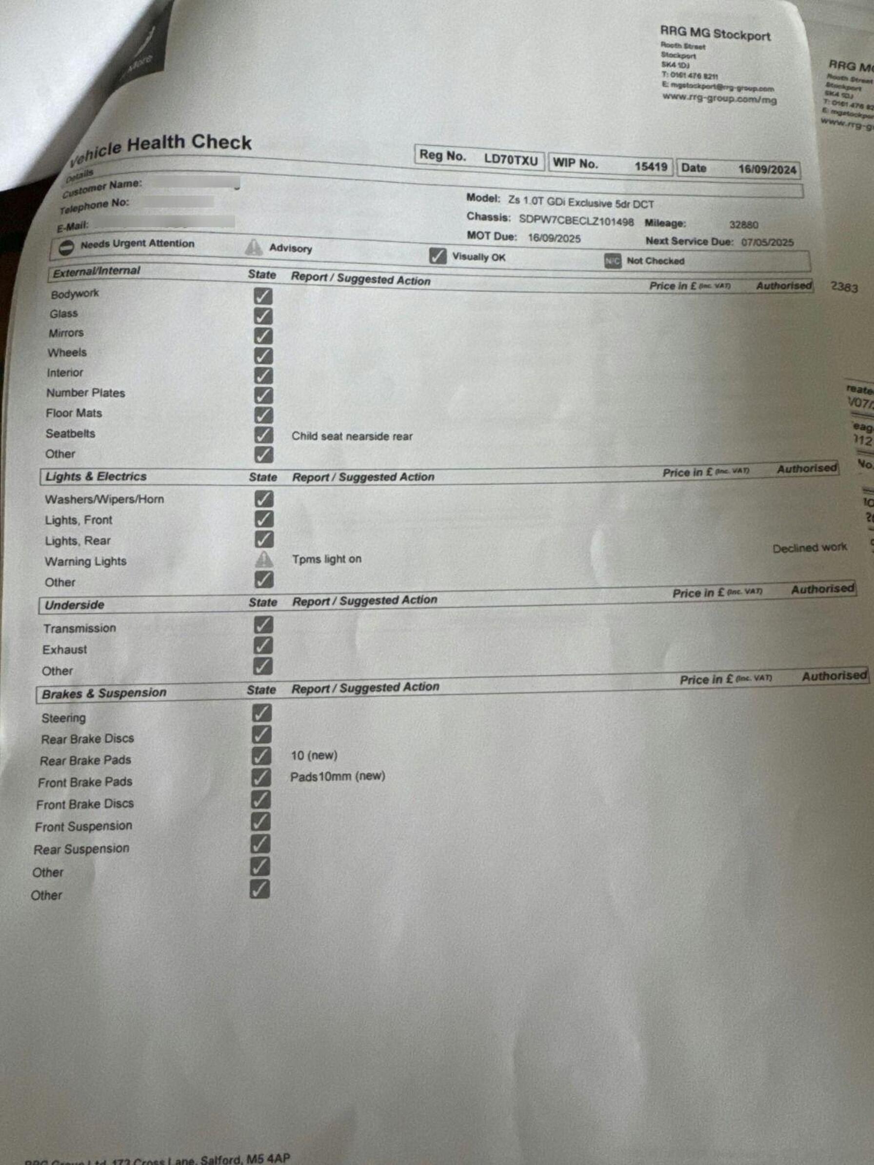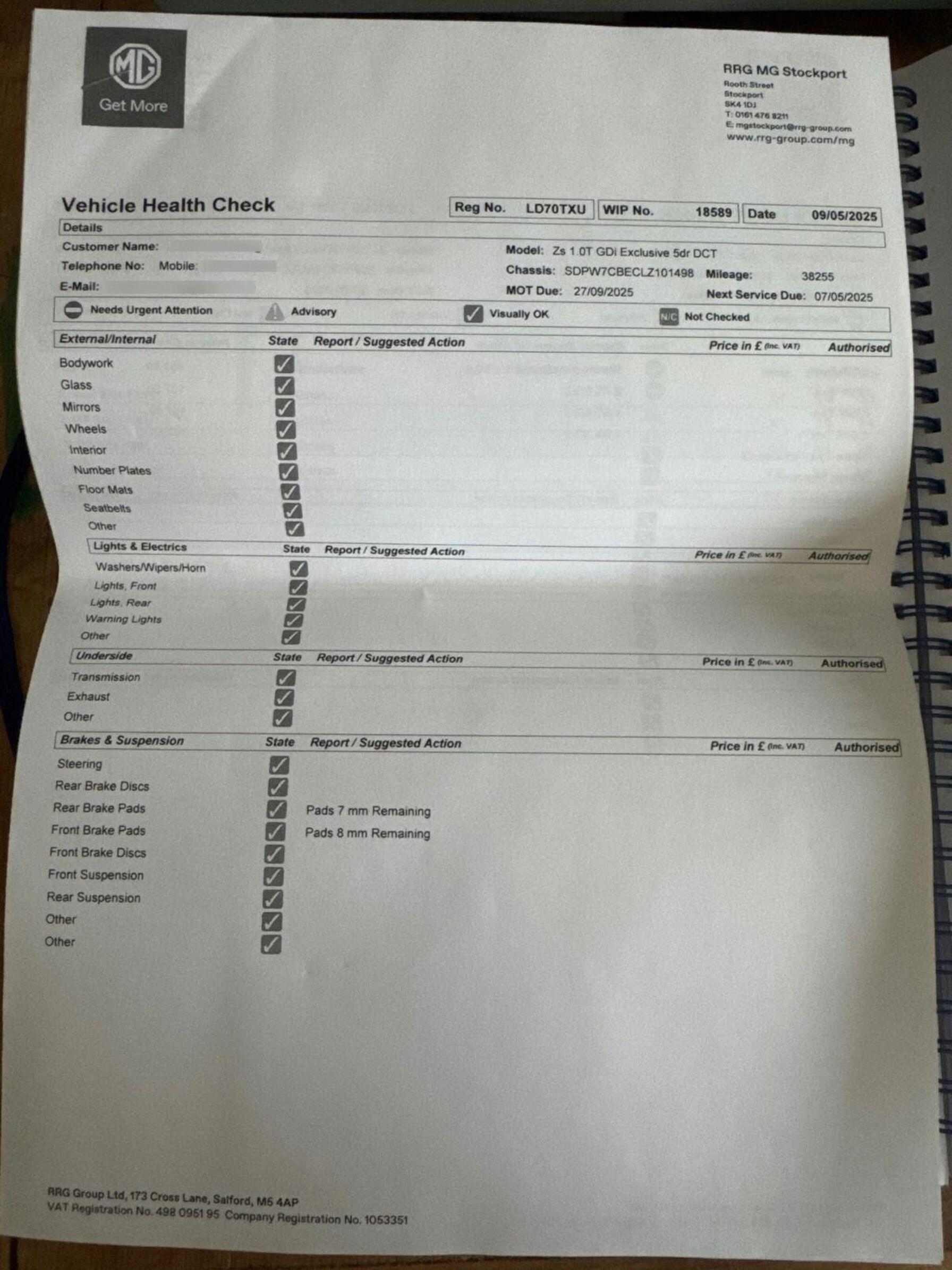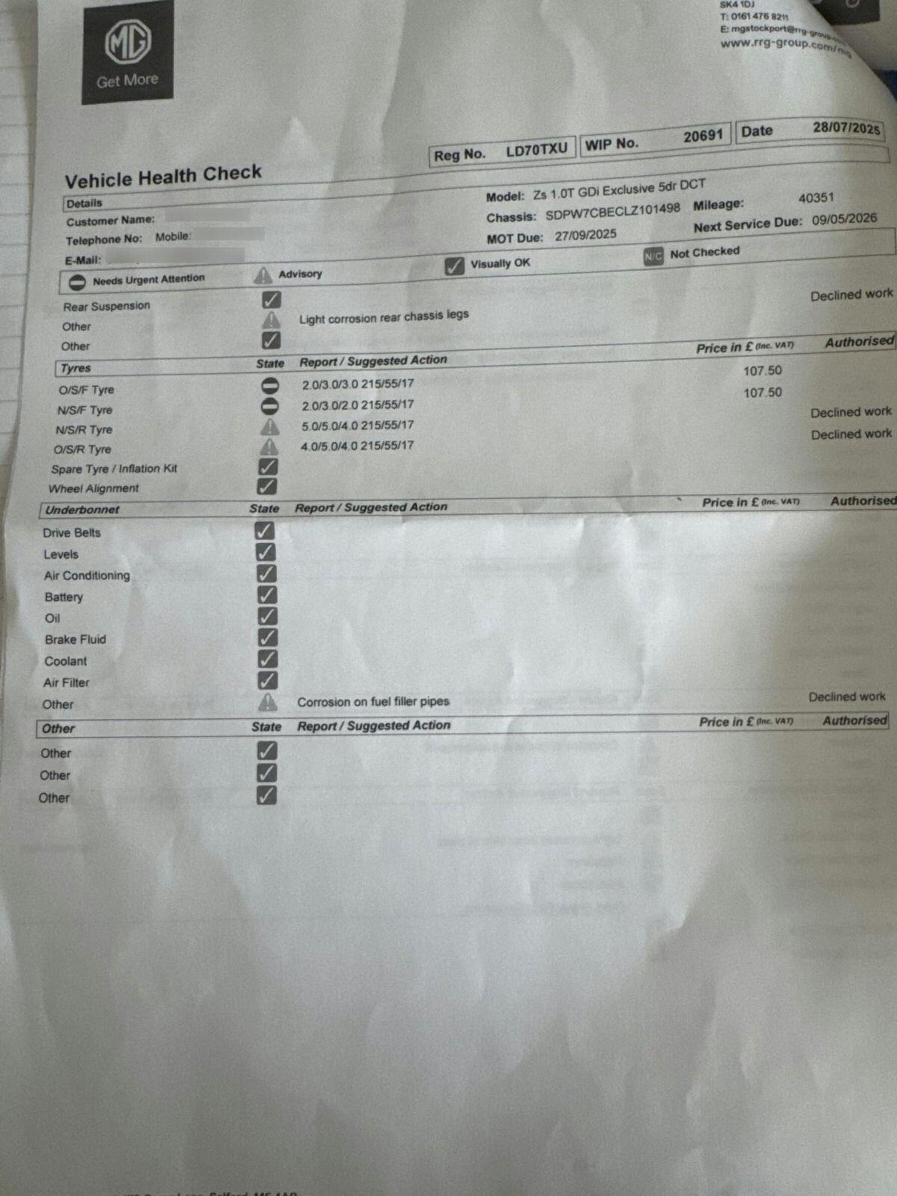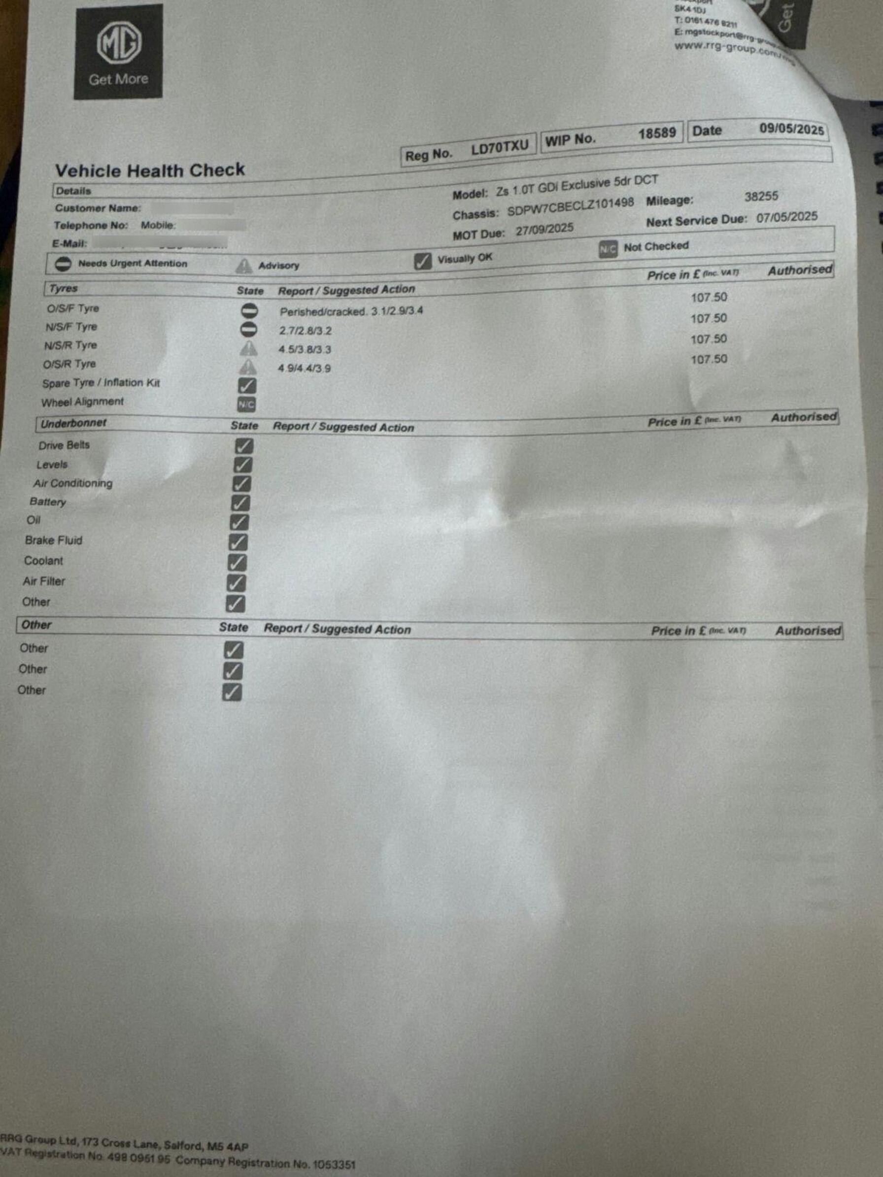 - Service & MOT plans available – call for a quote