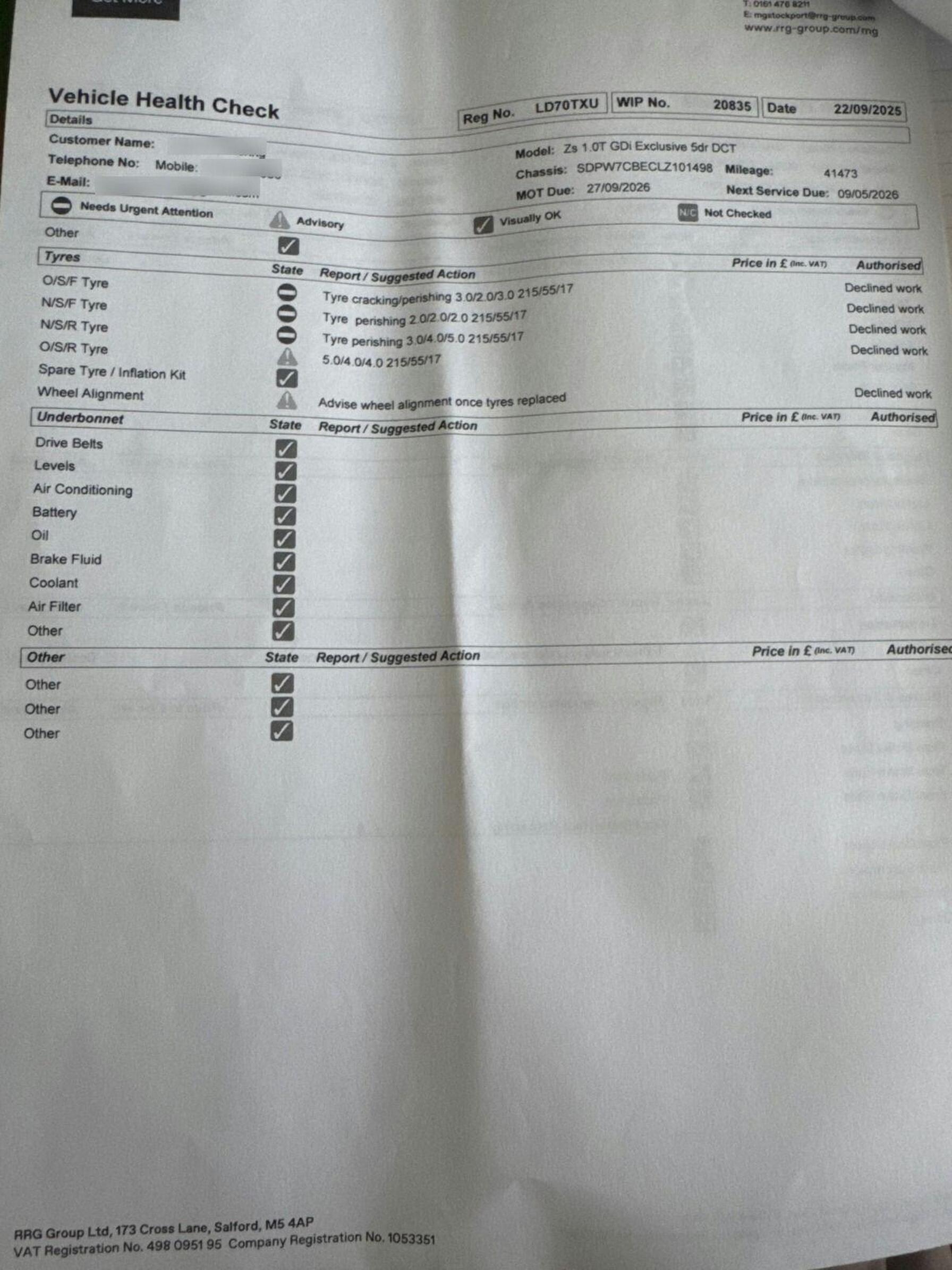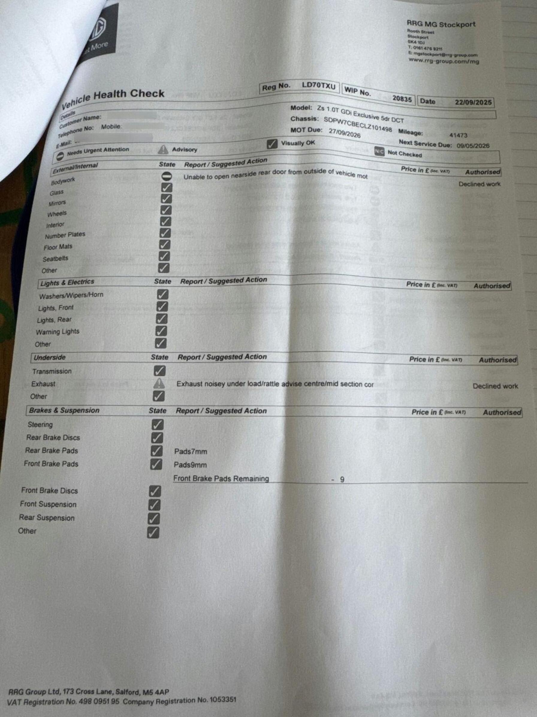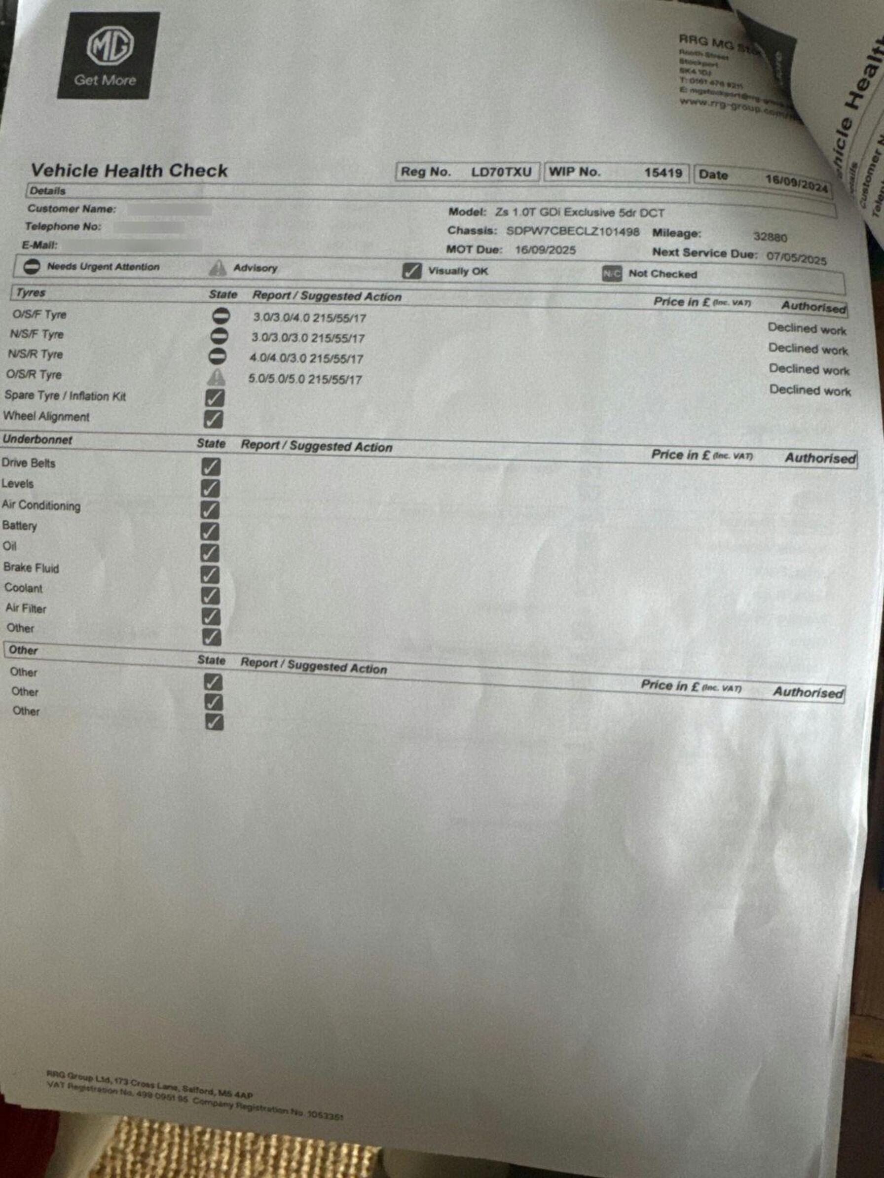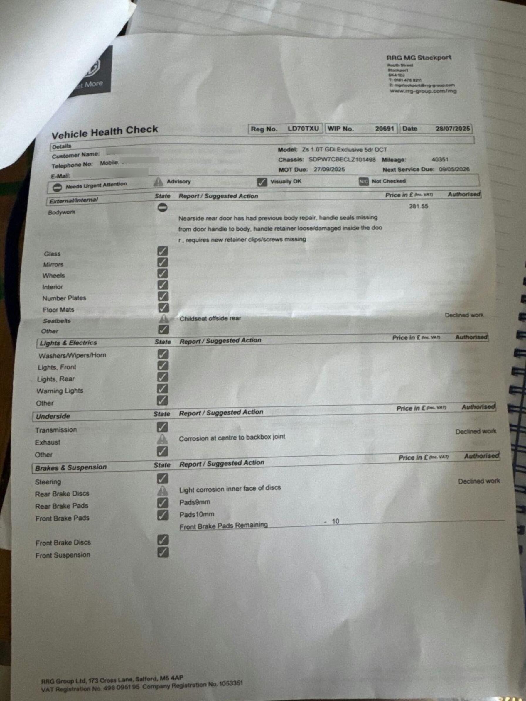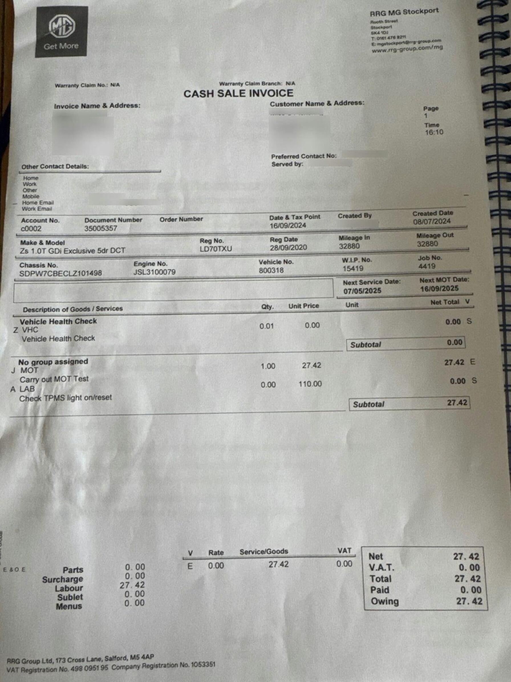 - Service & MOT plans available – call for a quote