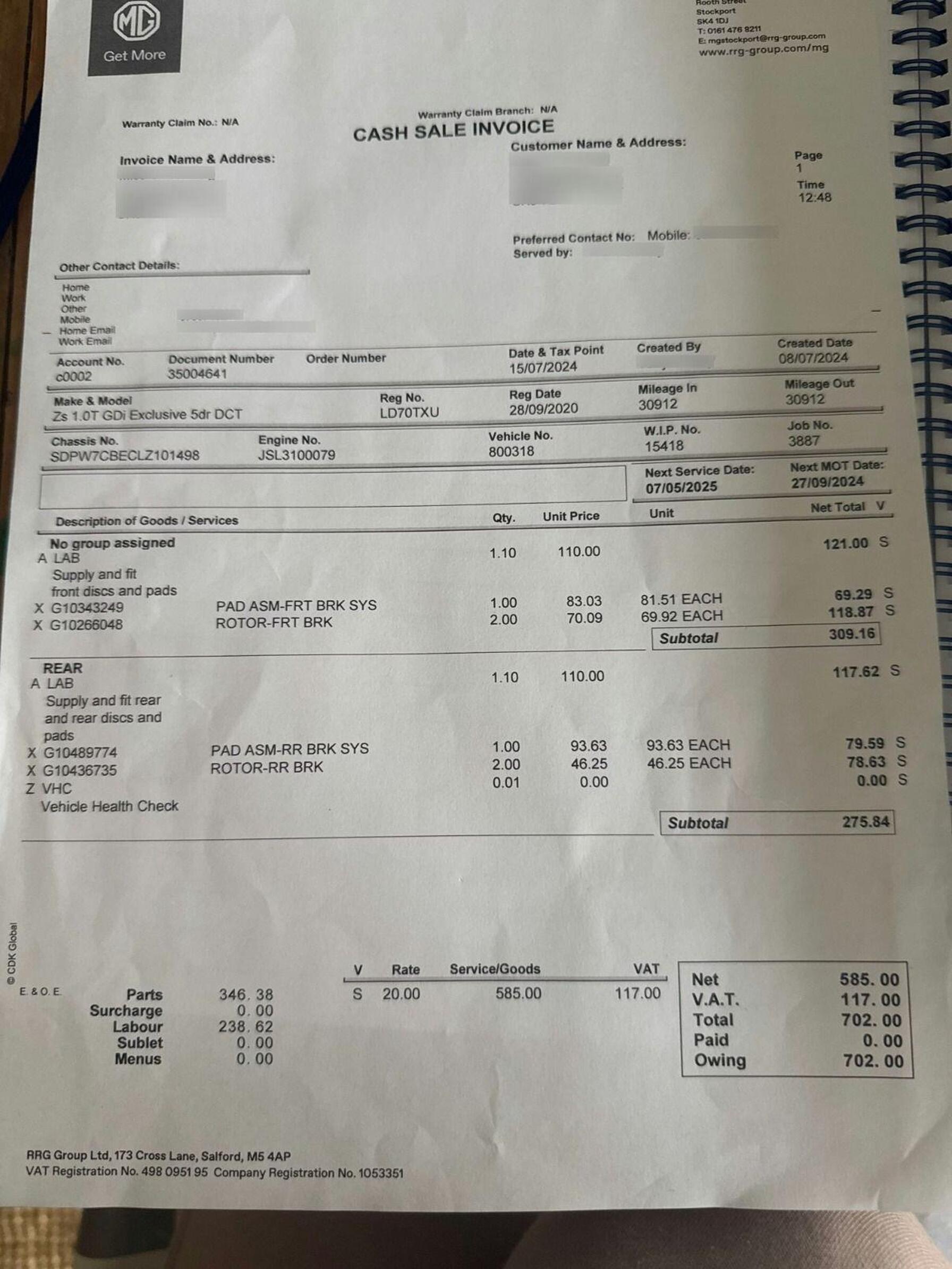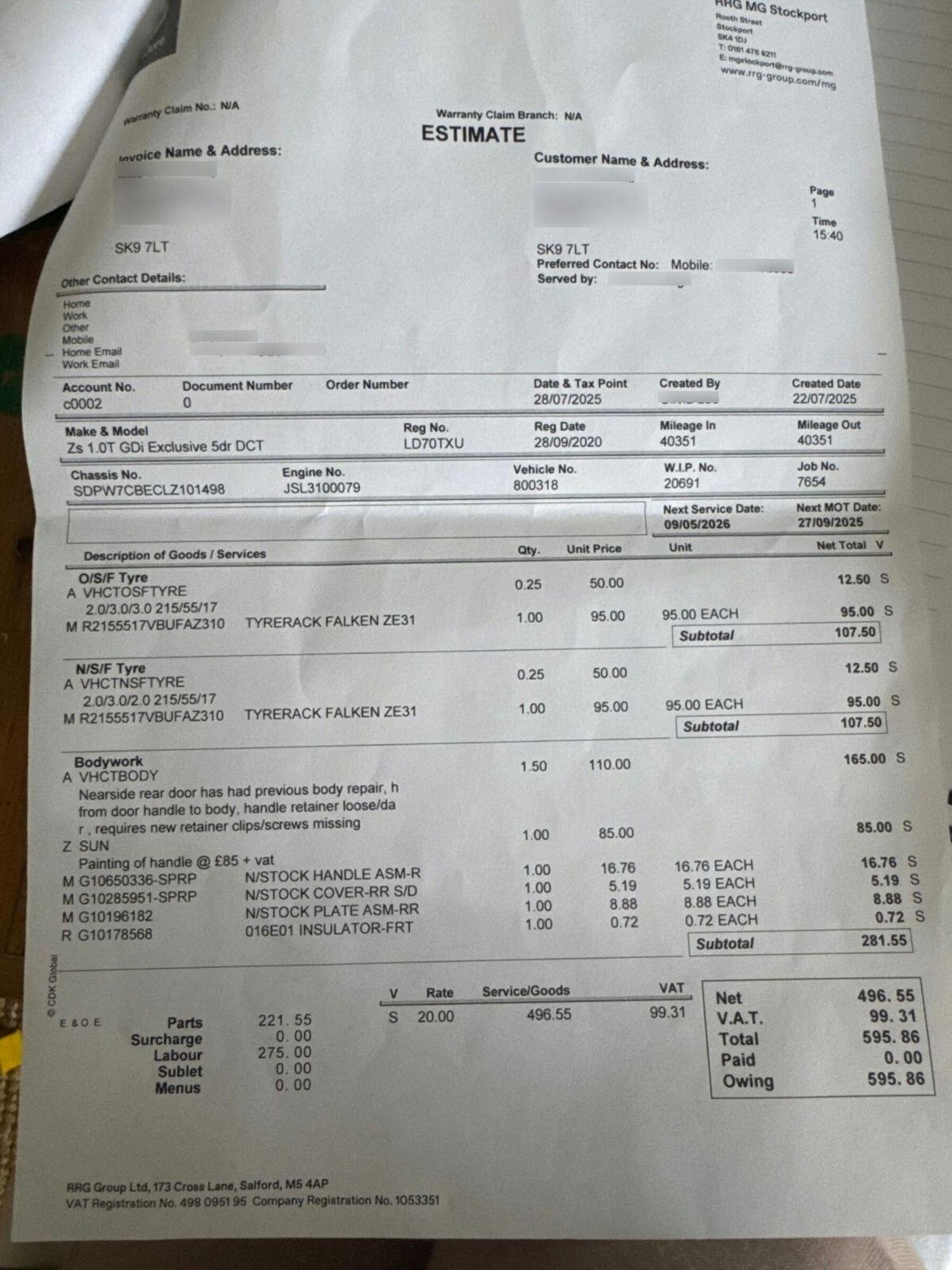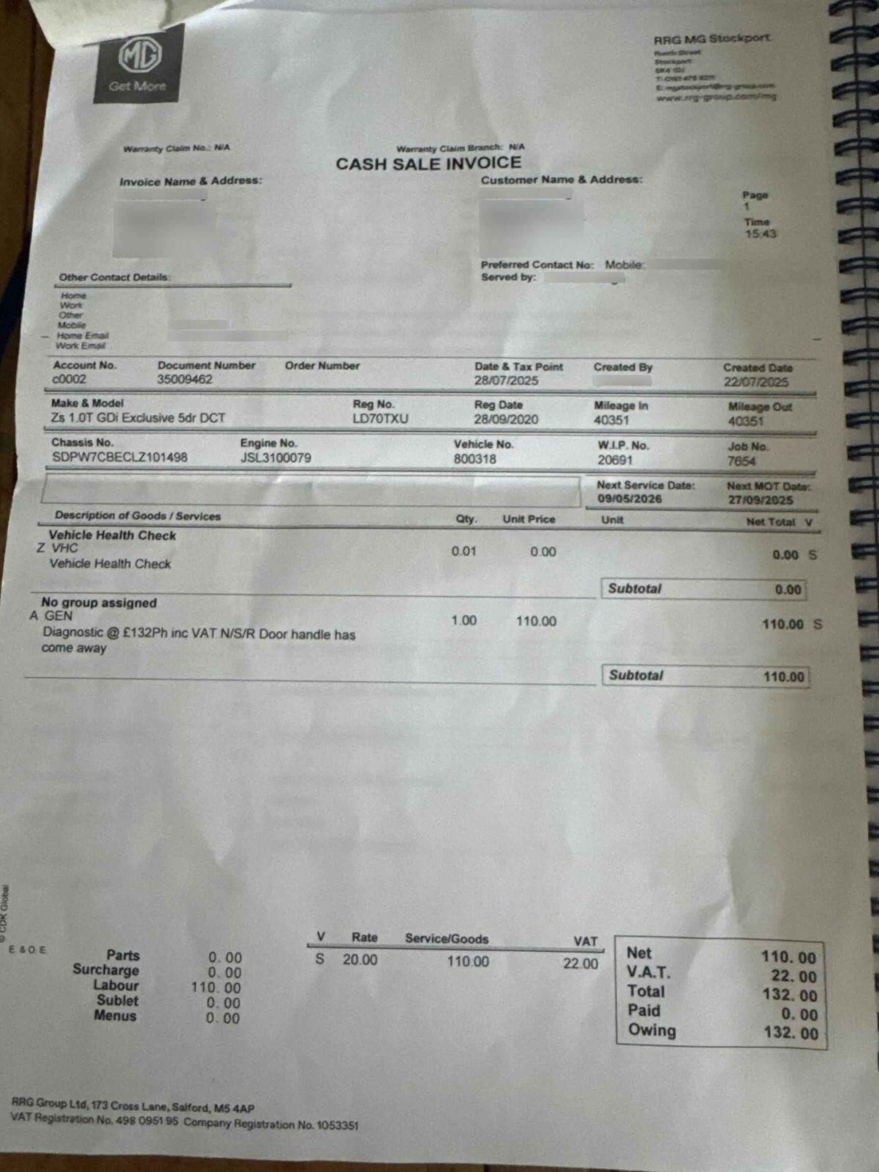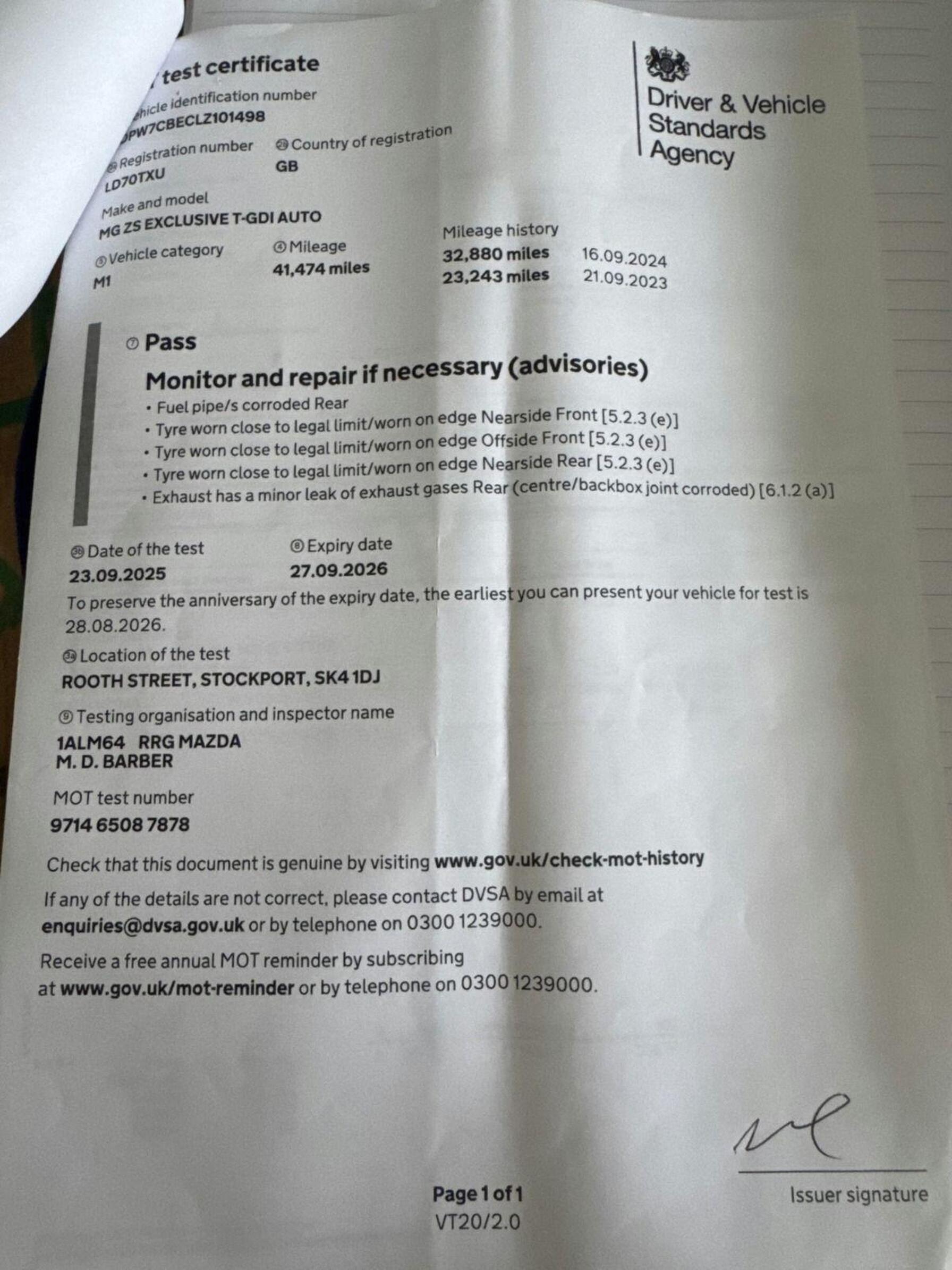 - Service & MOT plans available – call for a quote