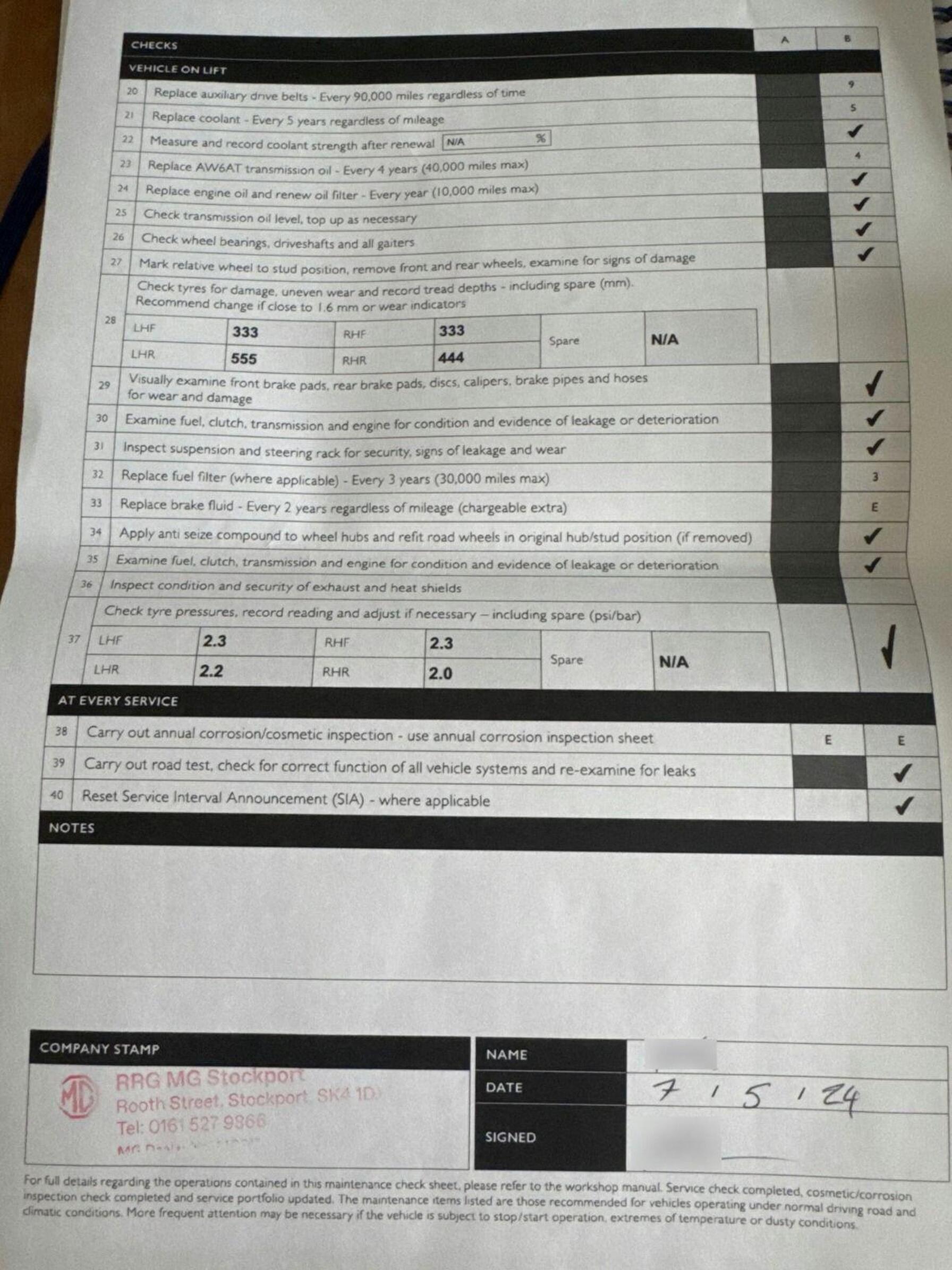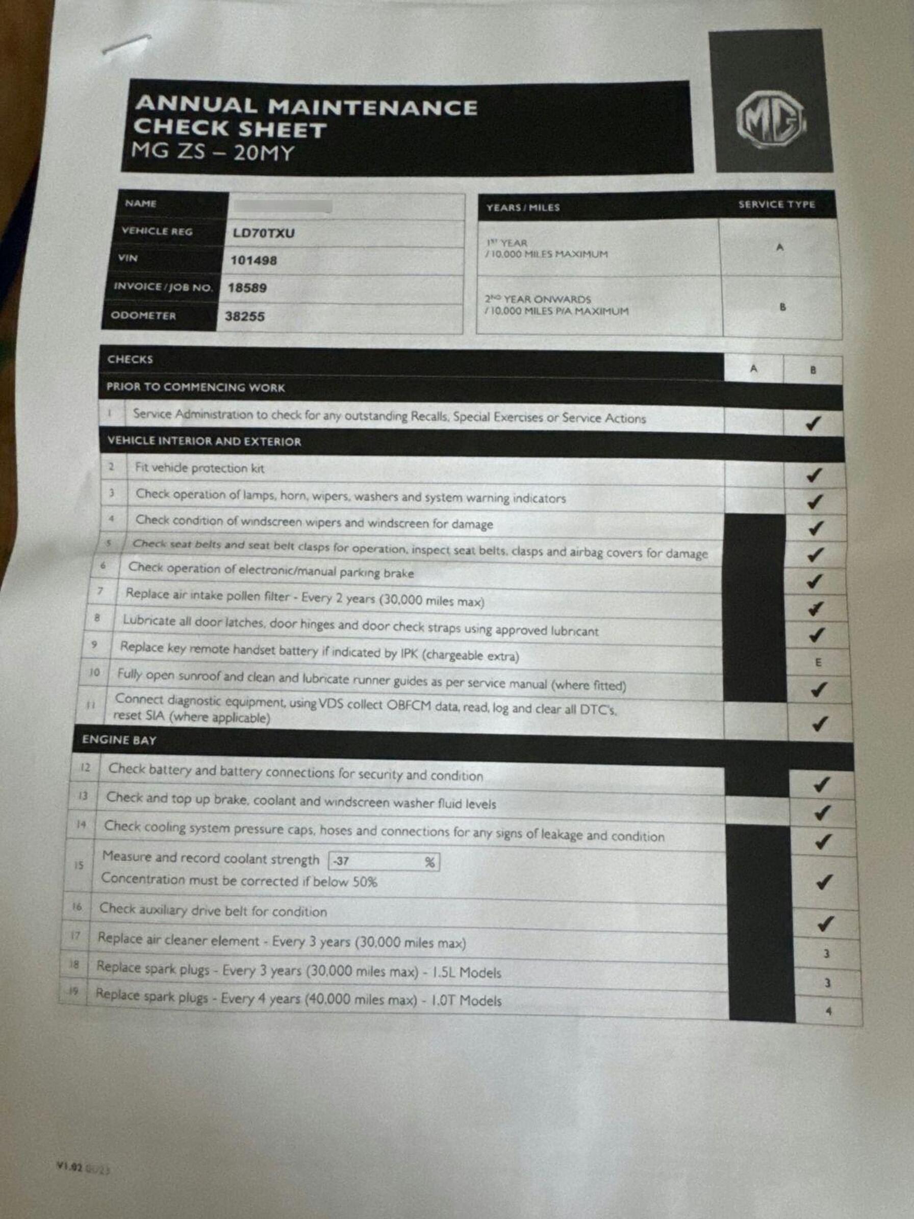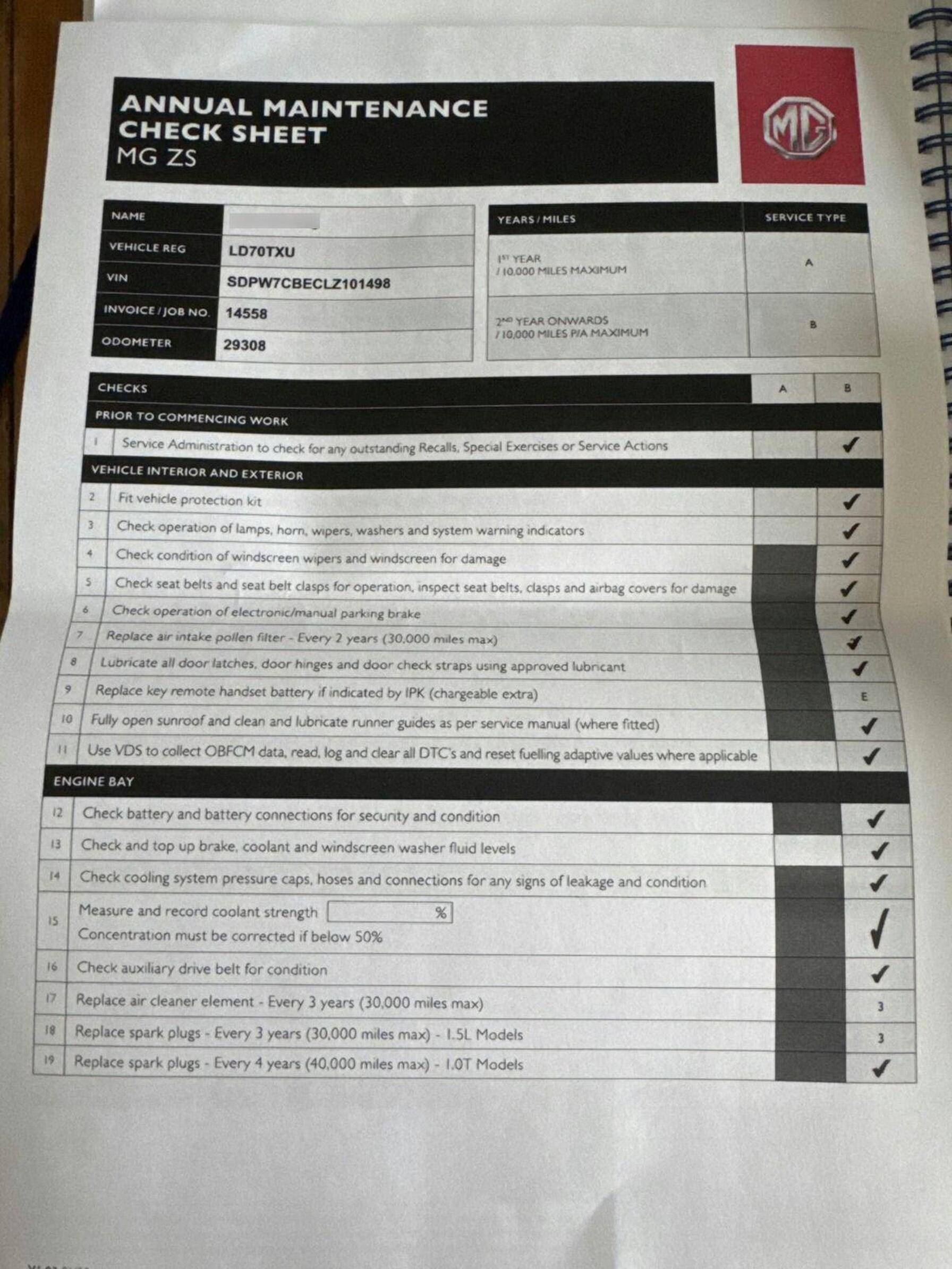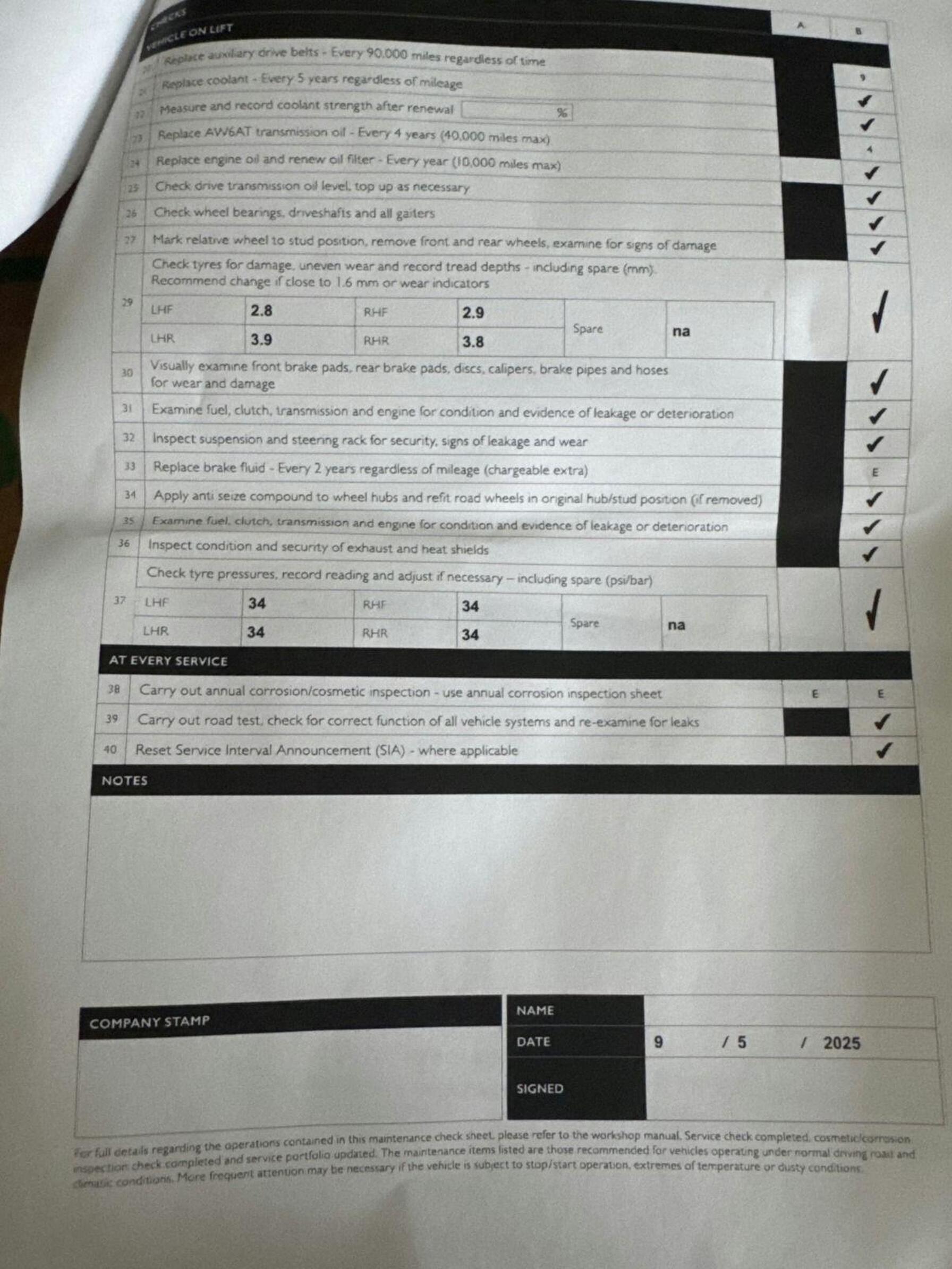 ✅ Fresh service carried out (if required)